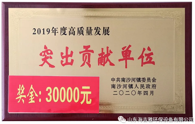 2019年度(dù)向日葵视频网站環保實現稅收一千五百餘(yú)萬元為南沙(shā)河(hé)鎮(zhèn)經濟發展(zhǎn)做(zuò)出了重(chóng)要貢獻,榮獲“高質量發展突出貢獻單位”稱(chēng)號。